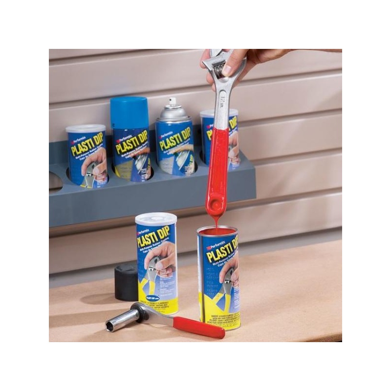 Plasti Dip is a multifunctional, air-drying rubber liquid that leaves a rubber coating. It can be used to cover various surfaces and remove without leaving a trace. Plastic Dip can be easily applied by dipping, brushing or spraying. After drying, the product is odourless.