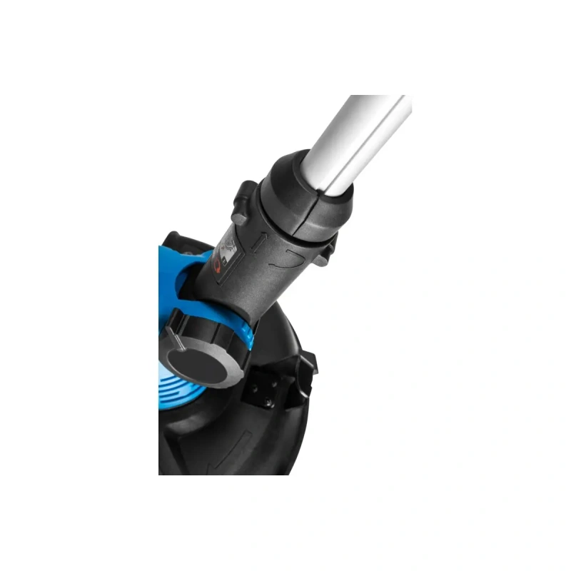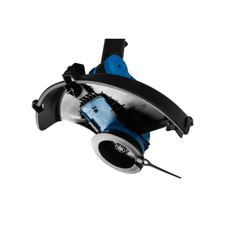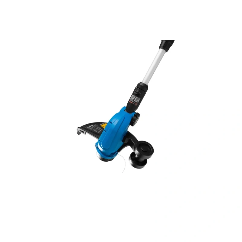 Регулируемая длина рукоятки позволяет настроить инструмент под рост пользователя, а регулируемый угол наклона головки облегчает стрижку в труднодоступных местах, например, под скамейками или кустами. Боковое колесо, предназначенное для обработки краев, позволяет ровно и эстетично подстригать края газона вдоль тротуаров и бордюров, не поднимая инструмент.
